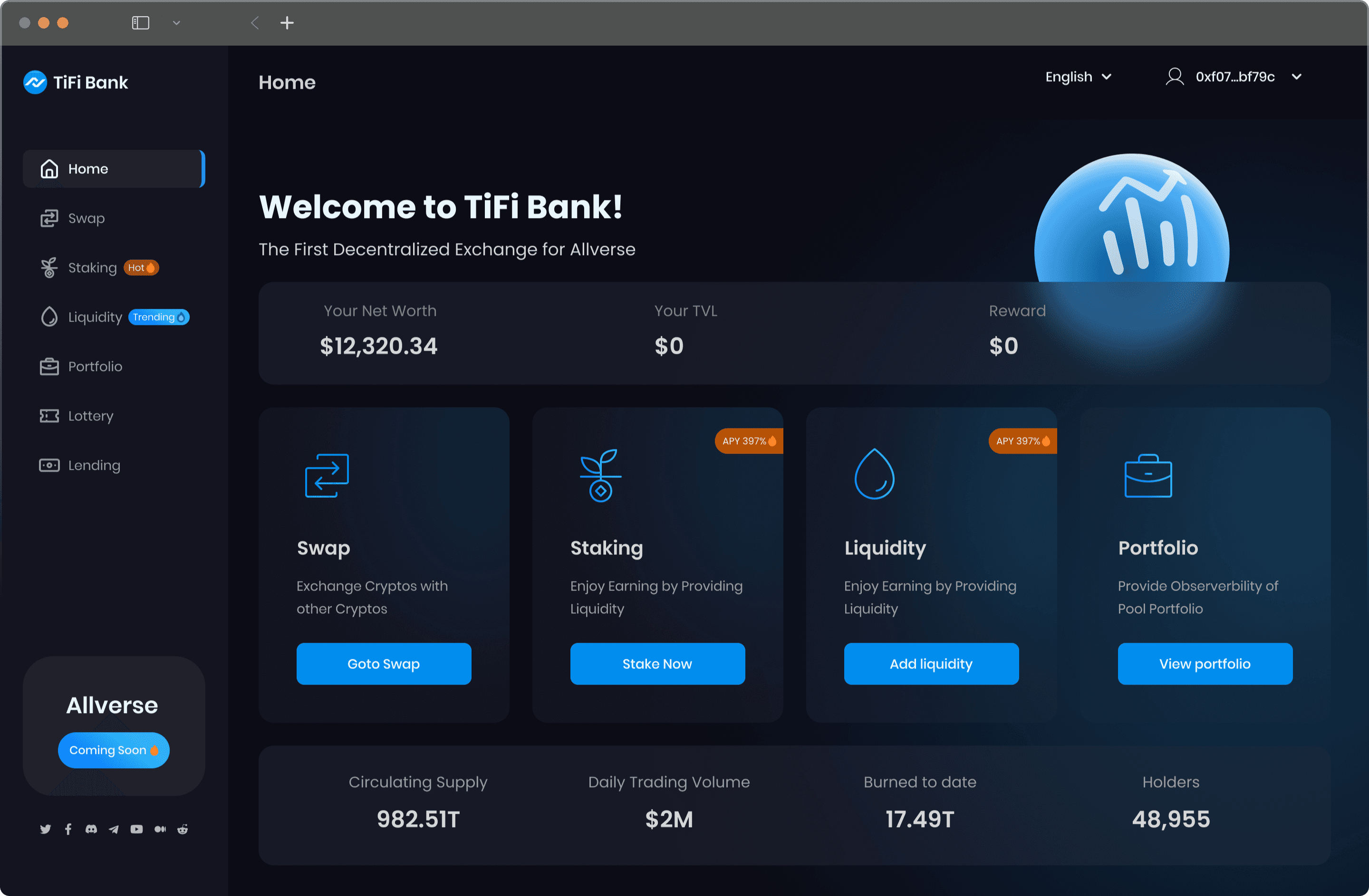 TiFi is pioneering a groundbreaking decentralized e-commerce ecosystem that seamlessly integrates Web3 and blockchain technologies into your daily routines. Our innovative platform empowers users to exchange on-chain assets for tangible real-world products, fostering widespread adoption of cryptocurrency and blockchain solutions in all aspects of life. Furthermore, TiFi serves as a decentralized financial hub and exchange, facilitating seamless token and coin swaps on the Binance blockchain.
